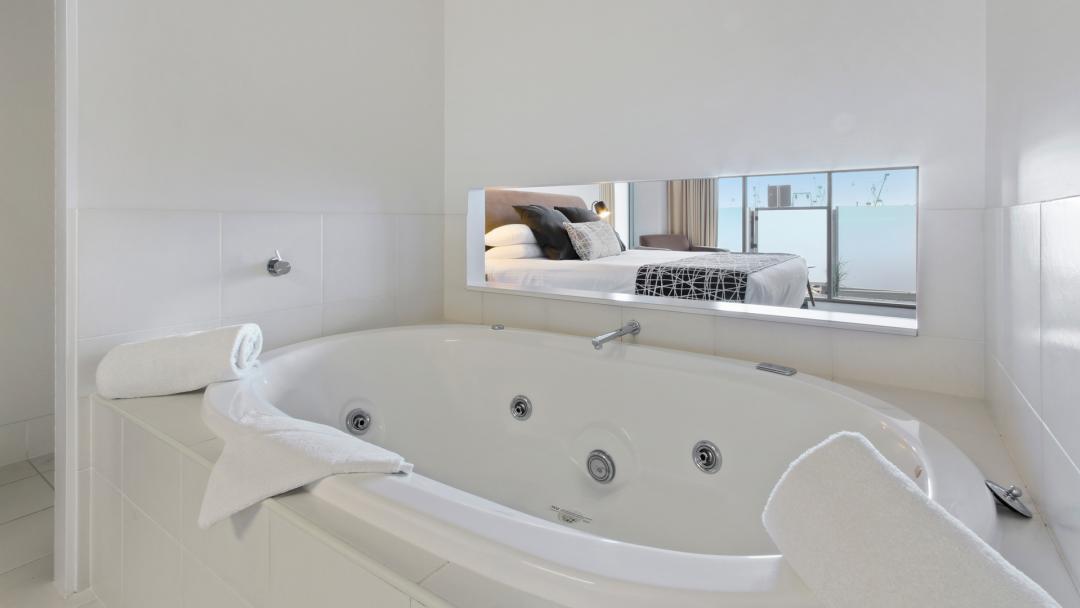 When you stay with us, you will stay right in the heart of Lakes Entrance township. Opposite the wharf, home to the local fishing fleet. Your room features King size bed and a luxurious two person spa bath. Your booking is inclusive of complimentary on-site car parking.